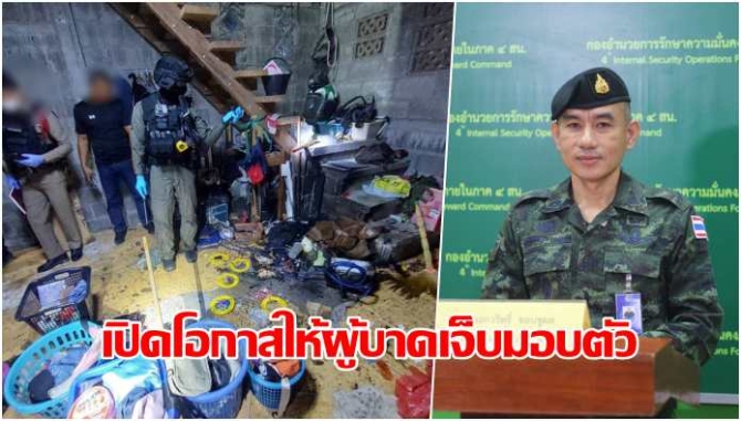 กอ.รมน.ภาค 4 สน. ยันเสียชีวิต 1 ราย พร้อมเปิดโอกาสให้ผู้บาดเจ็บมอบตัว หลังเหตุระเบิดในบ้านพัก