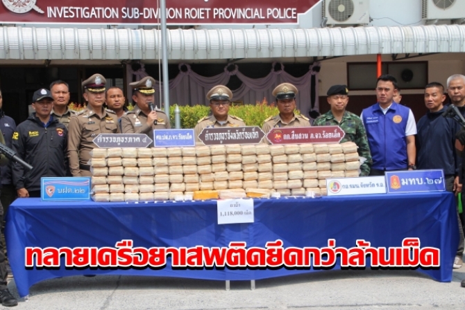 ร้อยเอ็ดโชว์ผลงานทลายเครือข่ายลำเลียงยาเสพติด ยึดกว่า 1 ล้านเม็ด