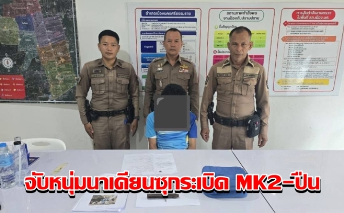 ตร.เมืองคอนบุกจับหนุ่มนาเคียนซุกระเบิด MK2-ปืนไทยประดิษฐ์-ยาเสพติด