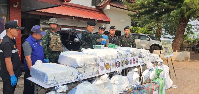 วันที่ 5 มีนาคม 2569 เวลา 10.00 น. พล.ต.สาธิต ไวยนนท์ ผู้บัญชาการกองกำลังผาเมือง มอบหมายให้ พ.อ.สุพรรณ ร้อยพุทธ ผู้บังคับหน่วยเฉพาะกิจทัพเจ้าตาก พร้อมเจ้าหน้าที่ตำรวจ สภ.แม่ฟ้าหลวง และฝ่ายปกครอง ร่วมกันแถลงผลการตรวจยึดยาเสพติดประเภทไอซ์น้ำหนักรวมประมาณ 600 กิโลกรัม ซึ่งตรวจยึดได้เมื่อช่วงค่ำวันที่ 4 มีนาคมที่ผ่านมา ในพื้นที่อำเภอแม่ฟ้าหลวง จังหวัดเชียงราย