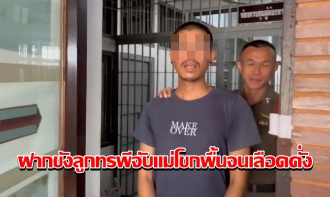 ฝากขังลูกทรพี จับแม่โขกพื้นจนเลือดคั่ง อ้างเป็นคนอารมณ์ดี ไม่เคยทำร้ายใคร