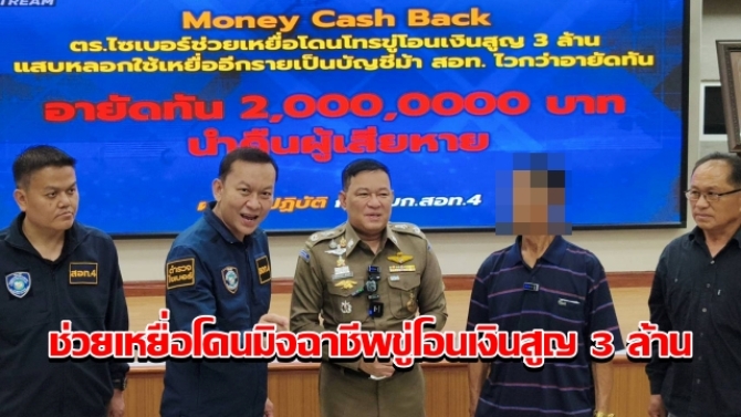 ตร.ไซเบอร์ช่วยเหยื่อโดนมิจฉาชีพขู่โอนเงินสูญ 3 ล้าน แสบหลอกใช้เหยื่ออีกรายเป็นบัญชีม้า สอท. ไวกว่าอายัดทัน