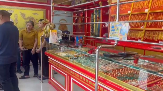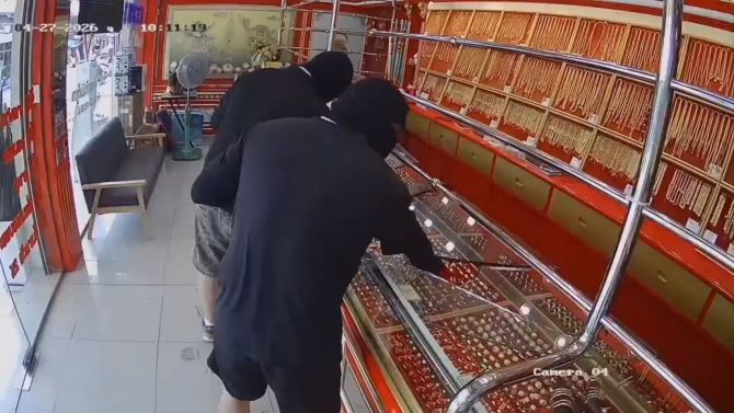 2 คนร้ายบุกร้านทอง ทุบตู้ฉกทอง ซิ่งเก๋งหนีลอยนวล