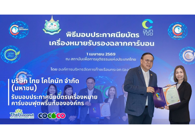 COCOCO รับประกาศนียบัตรเครื่องหมายคาร์บอนฟุตพริ้นท์