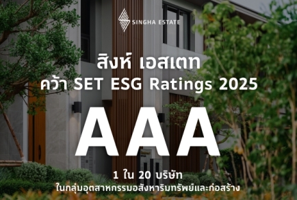 ‘สิงห์ เอสเตท’ คว้า SET ESG Ratings 2025 ระดับ AAA