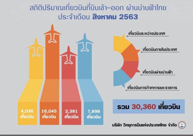 บริษัท วิทยุการบินแห่งประเทศไทย จำกัด (บวท.) สรุปปริมาณเที่ยวบินเดือนสิงหาค