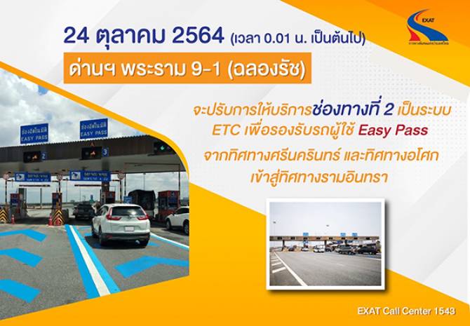24 ต.ค. นี้เปลี่ยนช่องทางบริการ ช่วงด่านฯพระราม 9-1 (ฉลองรัช)