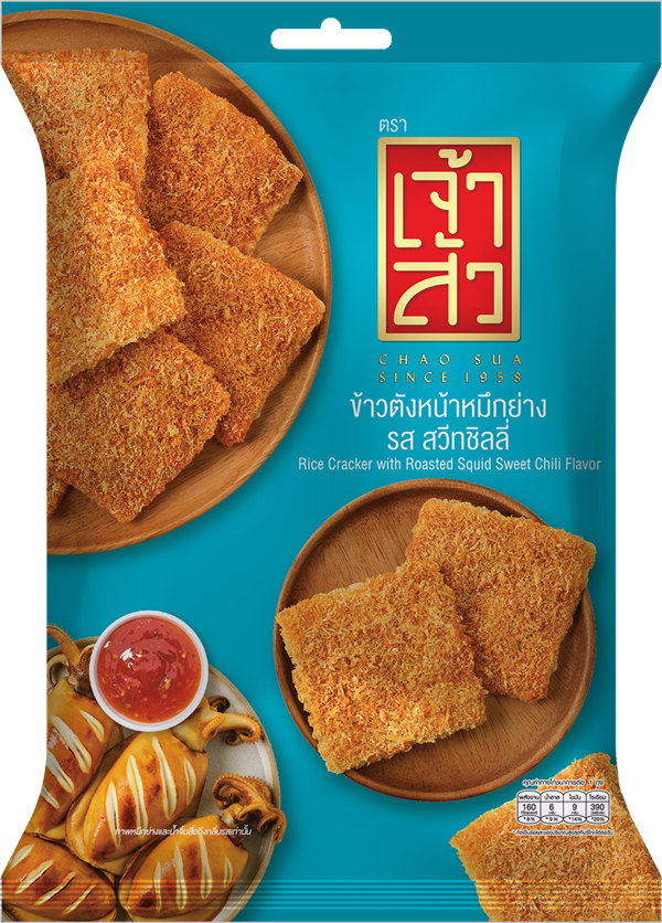 ความพิเศษของ ‘ข้าวตังหน้าหมึกย่าง รสสวีทชิลลี่’ เป็นการใช้หมึกย่างมาเป็นส่วนประกอบ ปรุงรสเข้มข้นถูกปากคนไทย เอาใจสายสตรีทฟู้ด ให้อร่อยกลมกล่อม ปิดท้ายด้วยซอสรสชาติถึงเครื่องด้วยสูตรลับตำรับเจ้าสัว เป็นการขยายกลุ่มลูกค้าให้กว้างขึ้น ในแพ็คเกจสีสันสะดุดตาใน 2 ขนาดคือ 30 กรัม ราคา 20 บาท และ 80 กรัม ราคา 60 บาท เป็นราคาที่จับต้องง่ายในปริมาณที่คุ้มค่าที่สุด