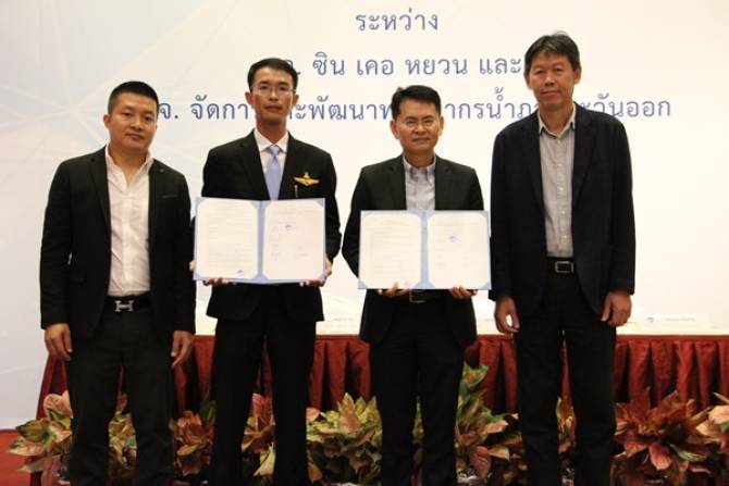 นายเชิดชาย ปิติวัชรากุล กรรมการผู้อำนวยการใหญ่ บริษัท จัดการและพัฒนาทรัพยากรน้ำภาคตะวันออก จำกัด (มหาชน) หรือ อีสท์ วอเตอร์ ลงนามสัญญาซื้อขายน้ำอุตสาหกรรม กับนายหลินฟง เฉิน กรรมการผู้จัดการ บริษัท ซิน เคอ หยวน จำกัด เพื่อสร้างความมั่นคงด้านน้ำให้กับลูกค้าในทุกรูปแบบ สร้างความเชื่อมั่นในการตอบสนอง ความต้องการด้านน้ำในระยะยาวตลอดอายุสัญญา 30 ปี