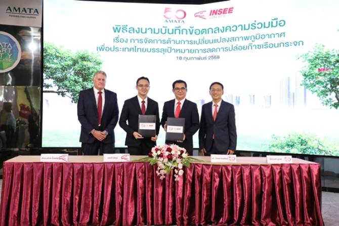 นายวิวัฒน์ กรมดิษฐ์ ประธานเจ้าหน้าที่เทคนิควิศวกรรมและประธานเจ้าหน้าที่บริหารกลุ่มธุรกิจอสังหาริมทรัพย์์ในประเทศไทยของอมตะ เปิดเผยว่า วันนี้ (18 ก.พ. . 2568) กลุ่มอมตะ และ บริษัท นครหลวงคอนกรีต จำกัด บริษัทในกลุ่มบริษัทปูนซีเมนต์นครหลวง ได้ร่วมลงนามข้อตกลงความร่วมมือในการจัดการด้านการเปลี่ยนแปลงสภาพภูมิอากาศเพื่อให้ประเทศไทยบรรลุเป้าหมายลดการปล่อยก๊าซเรือนกระจก (CO2) ให้เกิดขึ้นอย่างเป็นรูปธรรม ผ่านการนำวัสดุก่อสร้าง ทั้งปูนซีเมนต์และคอนกรีตผสมเสร็จที่เป็นมิตรกับสิ่งแวดล้อม มาใช้ในโครงการก่อสร้างต่าง ๆ ที่มุ่งลดการปล่อยคาร์บอนไดออกไซด์ สอดรับกับแนวทางของอุตสาหกรรมก่อสร้างยุคใหม่ ที่ให้ความสำคัญกับความยั่งยืน เพื่อลดผลกระทบจากภาวะโลกร้อน (Global Warming)