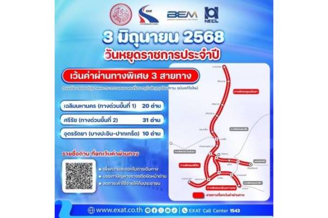การทางพิเศษแห่งประเทศไทย (กทพ.) กระทรวงคมนาคม ยกเว้นค่าผ่านทางพิเศษของทางพิ