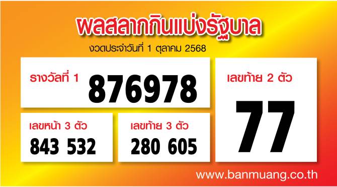 ผลสลากกินแบ่งรัฐบาล งวดประจำวันที่ 1 ตุลาคม 2568