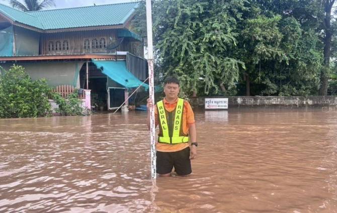 4. ถนนทางหลวงชนบทสาย รอ.4007 แยก ทล.2259 (กม.ที่ 19+400) - บ้านสว่าง อ.เสลภูมิ, โพนทอง จ.ร้อยเอ็ด กม.ที่ 17+700 - 18+170 ระดับน้ำ 150 เซนติเมตร