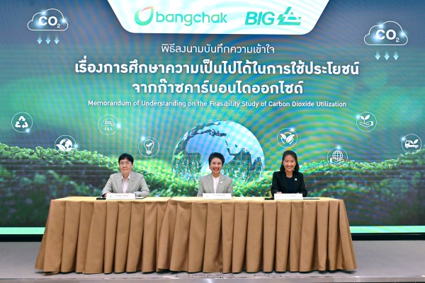 บริษัท บางจาก คอร์ปอเรชั่น จำกัด (มหาชน) จัดพิธีลงนามบันทึกความเข้าใจ เรื่องการศึกษาความเป็นไปได้ในการใช้ประโยชน์จากก๊าซคาร์บอนไดออกไซด์ กับ บีไอจี เพื่อศึกษาแนวทางการใช้ประโยชน์จากก๊าซคาร์บอนไดออกไซด์ (CO2 Utilization) ซึ่งเป็นการต่อยอดความร่วมมือกับสถาบันเทคโนโลยีแห่งเอเชียและ Mitico จากสหรัฐอเมริกา นำร่องใช้เทคโนโลยีดักจับก๊าซคาร์บอนไดออกไซด์ (Carbon Capture) ที่โรงกลั่นน้ำมันบางจาก พระโขนง เป็นโรงกลั่นน้ำมันรายแรกของประเทศไทยที่มีการศึกษาแนวทางการนำคาร์บอนที่ดักจับได้ไปใช้ประโยชน์ เพื่อสร้างมูลค่าเพิ่มอย่างเป็นรูปธรรม