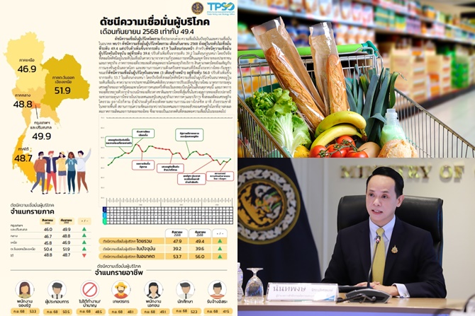 เมื่อวันที่ 9 ตุลาคม 2568 นายนันทพงษ์ จิระเลิศพงษ์ ผู้อำนวยการสำนักงานนโยบายและยุทธศาสตร์การค้า (สนค.) เปิดเผยผลสำรวจความคิดเห็นของประชาชนทั่วประเทศ จำนวน 5,793 ราย พบว่า ดัชนีความเชื่อมั่นผู้บริโภคโดยรวมเดือนกันยายน 2568 อยู่ที่ระดับ 49.4 เพิ่มขึ้นจากระดับ 47.9 ในเดือนก่อนหน้า สะท้อนถึงความเชื่อมั่นของประชาชนที่เริ่มปรับตัวดีขึ้น จากความคาดหวังต่อมาตรการกระตุ้นเศรษฐกิจของภาครัฐในระยะต่อไป
