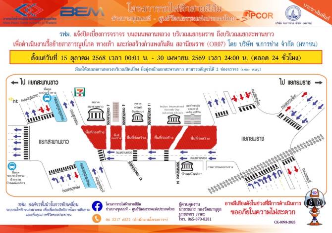 รฟม.แจ้งเบี่ยงจราจร ถ.หลานหลวง แยกยมราช -แยกสะพานขาว 15 ต.ค 68 -30 เม.ย.69