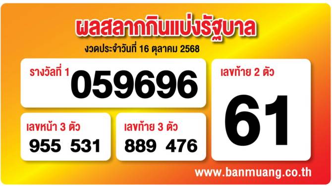 ผลสลากกินแบ่งรัฐบาล ประจำงวดวันที่ 16 ตุลาคม 2568