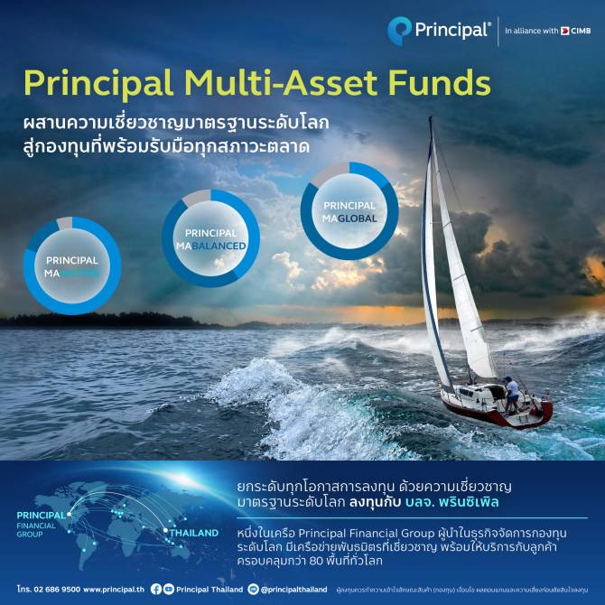 บริษัท หลักทรัพย์จัดการกองทุน พรินซิเพิล จำกัด แนะนำกองทุน Principal Multi-Asset Funds ทางเลือกในการจัดพอร์ตที่ยืดหยุ่นแก่นักลงทุนไทย ชูจุดเด่นกลยุทธ์การลงทุนที่ผสานความเชี่ยวชาญระดับโลกและการปรับพอร์ตแบบไดนามิก รับมือความไม่แน่นอนของตลาดการเงินโลกในช่วงไตรมาสสุดท้ายของปี