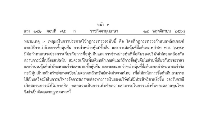 กฎกระทรวงว่าด้วยการซื้อหุ้นคืน (ฉบับที่ 3) พ.ศ. 2568 ของบริษัทมหาชน มีผลบังคับใช้แล้ว