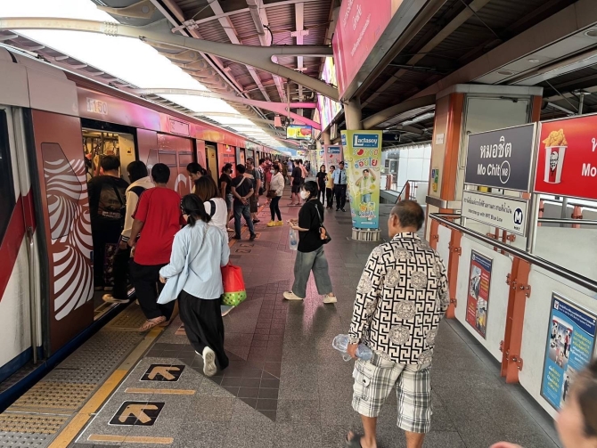 -ระบบรถไฟฟ้า มีผู้ใช้บริการรวม 957,550 คน-เที่ยว (ต่ำกว่าประมาณการร้อยละ 2.71) โดยยังคงมีการใช้บริการอย่างต่อเนื่อง โดยเฉพาะนักท่องเที่ยวที่เดินทางไปยังสถานที่สำคัญต่าง ๆ ในกรุงเทพฯ ทั้งนี้ ระบบรถไฟฟ้าทุกสายให้บริการได้ตามปกติ ไม่มีเหตุขัดข้อง ข้อมูลผู้ใช้บริการมีดังนี้