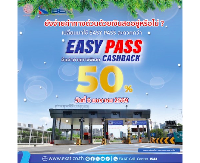 ขับผ่านด่านฯ แบบไม่ต้องจอด ชำระอัตโนมัติ สะดวก รวดเร็ว พร้อมรับเงินคืนจริง เปลี่ยนวิธีจ่าย เปลี่ยนประสบการณ์เดินทาง เริ่มได้แค่มี EASY PASS