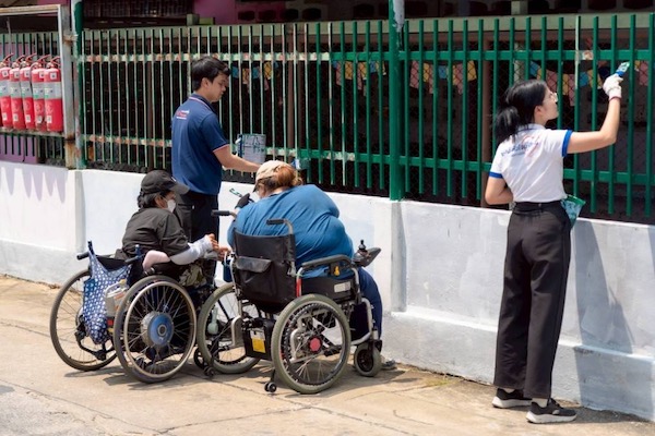 สำหรับการทำกิจกรรมอาสาเพื่อน้องในครั้งนี้ นำโดยนายสุริยะ โกทา, นางสาวประภาวัลย์ เมฆประสาท สมาชิกชมรมอาสาคนพิการ พร้อมด้วย นายกมลธร โกมารทัต ผู้จัดการส่วนสื่อสารองค์กร บริษัท ไทย สมายล์ บัส จำกัด ร่วมกันทาสีรั้วศูนย์พัฒนาเด็กอ่อนก่อนวัยเรียน และมอบขนมขบเคี้ยวให้กับน้องๆ ซึ่งมีนางสาวสุกัญญา พันธ์ลำเจียก หัวหน้าศูนย์พัฒนาเด็กอ่อนก่อนวัยเรียน ชุมชนเพชรสยาม เป็นผู้รับมอบ