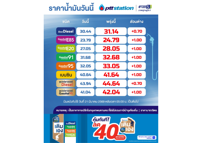 PTT Station และบางจากฯปรับราคาขายปลีกน้ำมั