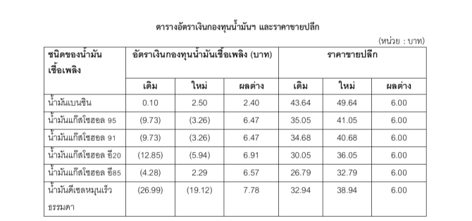 คณะกรรมการบริหารกองทุนน้ำมั นเชื้อเพลิง (กบน.) มีมติเห็นชอบในการปรับลดอั ตราชดเชยราคาน้ำมันดีเซลและกลุ่ มเบนซิน ทำให้ราคาขายปลีกน้ำมันทุกชนิด ในวันที่ 26 มีนาคม 2569 จะปรับขึ้น 6 บาทต่อลิตร ซึ่งการปรับราคาเป็ นผลมาจากสถานการณ์ความตึงเครี ยดในตะวันออกกลาง ส่งผลให้ระดับราคาน้ำมันมี การปรับตัวสูงขึ้นอย่างต่อเนื่ อง และทำให้ราคาน้ำมันดี เซลในตลาดสิงคโปร์ดีดตัวสูงขึ้ นอย่างรุนแรง จาก 198.20 เหรียญสหรัฐต่อบาร์เรลในวันที่ 23 มีนาคม 2569 พุ่งสูงถึง 242.91 เหรียญสหรัฐต่อบาร์เรลในวันที่ 23 มีนาคม 2569 อีกทั้งยังได้ส่งผลกระทบต่ อสภาพคล่องของกองทุนน้ำมันเชื้ อเพลิงที่ต้องแบกรับภาระชดเชยสู งถึงประมาณวันละ2,592 ล้านบาท หรือประมาณ 80,344 ล้านบาทต่อเดือน จึงมีความจำเป็นเร่งด่ วนในการปรับลดภาระเพื่อให้กองทุ นฯ มีสภาพคล่องในการรักษาเสถี ยรภาพราคาในระยะยาว เพื่อรองรับความผันผวนด้ านราคาน้ำมันเชื้อเพลิ งในตลาดโลกได้