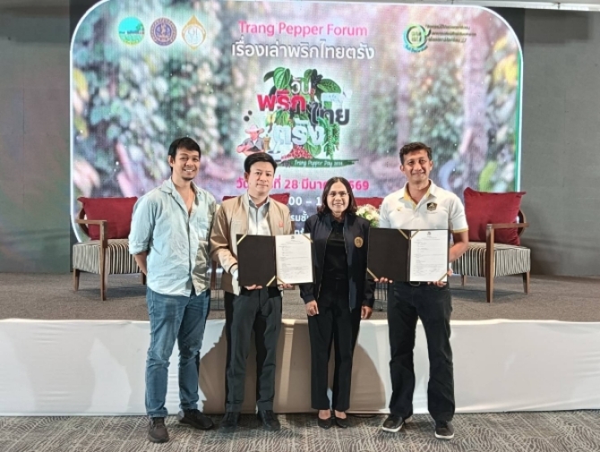 สำนักงานพาณิชย์จังหวัดตรัง ตั้งเป้าฟื้นอดีตพืชเศรษฐกิจชื่อดังระดับโลกสมัยรัชกาลที่ 5 ปลุกตำนานราชาเครื่องเทศ “พริกไทยตรัง พันธุ์ปะเหลียน” ในงาน “วันพริกไทยตรัง 2026 : Trang Pepper Day 2026” ให้กลับมาเป็น “Soft Power” ด้านอาหารและสุขภาพ ชูมาตรฐาน GI และสาร GLA ในพริกไทยพันธุ์ปะเหลียน ช่วยบำรุงสมอง ตั้งเป้าลดการนำเข้าและขยายการส่งออกสู่ตลาดสิงคโปร์ จีน และยุโรป