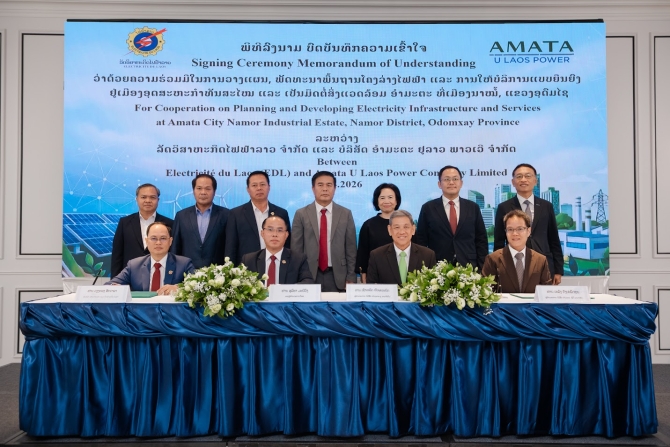 “อมตะ ยู” ผนึกกำลัง รัฐวิสาหกิจไฟฟ้าลาว (EDL) ลงนาม MOU พัฒนาโครงข่ายพลังงานอัจฉริยะ “Amata Smart & Eco City” เมืองนาหม้อ รองรับดีมานด์ไฟฟ้า 300–400 เมกะวัตต์ ชูโมเดลเมืองอุตสาหกรรมแบบครบวงจร (Industrial City) ผสานพลังงานสะอาด–โครงสร้างพื้นฐานครบวงจร ปักหมุดลาวเหนือสู่ศูนย์กลางการลงทุนใหม่ของภูมิภาค