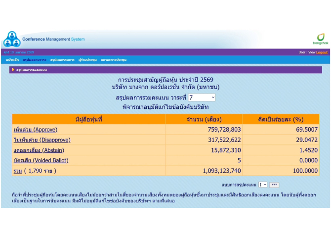 บริษัท บางจาก คอร์ปอเรชั่น จำกัด (มหาชน) ขอขอบคุณผู้ถือหุ้นเสียงส่วนใหญ่ ที่สนับสนุนการยกระดับธรรมาภิบาล ในวาระที่ 7 ของการประชุมสามัญผู้ถือหุ้นประจำปี 2569 เมื่อวันที่ 10 เมษายน ที่ผ่านมา ซึ่งเป็นการเสนอแก้ไขข้อบังคับของบริษัทฯ เพื่อยกระดับมาตรฐานธรรมาภิบาลและให้สอดคล้องกับหลักเกณฑ์ทางกฎหมายและการกำกับดูแลในระดับสากล แม้จะไม่ได้รับคะแนนเสียงถึงเกณฑ์ที่กฎหมายกำหนด บริษัทฯ เห็นควรถึงการรายงานเหตุผลของการเสนอวาระนี้ รวมถึงผลกระทบที่เกี่ยวข้อง เพื่อให้ผู้ถือหุ้นและผู้มีส่วนได้เสียได้รับข้อมูลที่ครบถ้วน
