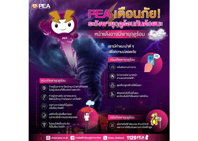 PEA เตือนภัย ระวังพายุฤดูร้อน