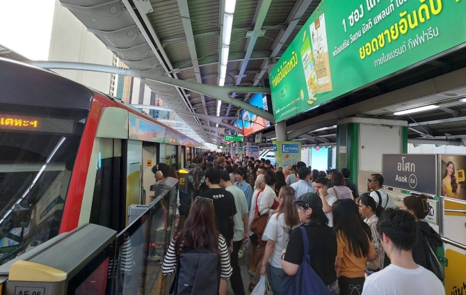 • สายสีเขียว: 411,622 คน-เที่ยว (ต่ำกว่าประมาณการร้อยละ 31.40) ให้บริการ 1,088 เที่ยว (สายสุขุมวิท 750 เที่ยว และสายสีลม 338 เที่ยว)
