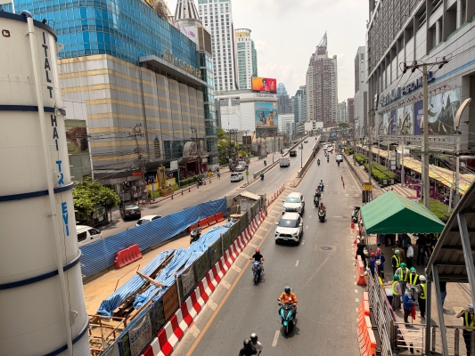พลตำรวจตรี ธวัช วงศ์สง่า รองผู้บัญชาการตำรวจนครบาล (บช.น.) พร้อมด้วย นายกิตติกร ตันเปาว์ รองผู้ว่าการ (วิศวกรรมและก่อสร้าง) การรถไฟฟ้าขนส่งมวลชนแห่งประเทศไทย (รฟม.) ในฐานะผู้อำนวยการโครงการรถไฟฟ้าสายสีส้ม ช่วงบางขุนนนท์ - ศูนย์วัฒนธรรมแห่งประเทศไทย และนายสุรพงษ์ เมี้ยนมิตร รองผู้อำนวยการสำนักงานนโยบายและแผนการขนส่งและจราจร (สนข.) แถลงข่าวเตรียมความพร้อมการปิดสะพานข้ามแยกประตูน้ำ เพื่อดำเนินงานก่อสร้างโครงการรถไฟฟ้าสายสีส้ม ช่วงบางขุนนนท์ - ศูนย์วัฒนธรรมแห่งประเทศไทย ลงพื้นที่บริเวณทางเดินเชื่อม (Sky Walk) หน้าศูนย์การค้าแพลทินั่ม แฟชั่น มอลล์ เพื่อตรวจสอบความพร้อมขั้นสุดท้าย ก่อนที่จะดำเนินการปิดสะพานข้ามแยกประตูน้ำ ในวันที่ 24 เมษายน 2569 ตั้งแต่เวลา 22.00 น. เป็นต้นไป ตลอด 24 ชั่วโมง จนถึงเดือนกุมภาพันธ์ 2570