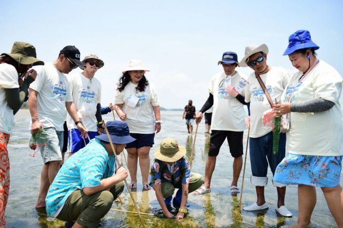 ภายในกิจกรรม ผู้เข้าร่วมได้เรียนรู้ระบบนิเวศชายฝั่ง ร่วมเก็บหอยตลับ และทำ “ซั้งเชือก” เพื่อสร้างแหล่งอาศัยให้สัตว์น้ำ โดยได้รับความร่วมมือจากกลุ่มประมงเรือเล็กเนินฆ้อ ซึ่งเป็นการส่งเสริมการมีส่วนร่วมของภาคประชาชนในการอนุรักษ์ทรัพยากรทางทะเล
