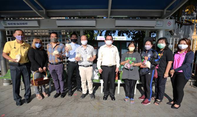 นายสมพร ปิยะพันธ์ รักษาราชการแทนอธิการบดี มหาวิทยาลัยเทคโนโลยีราชมงคลกรุงเทพ พร้อมด้วย คณะผู้บริหาร อาจารย์ เจ้าหน้าที่ ร่วมติดตั้ง “ตู้ปันสุข” บริเวณประตูด้านหน้ามหาวิทยาลัย พื้นที่เทคนิคกรุงเทพ (ป้ายรถเมล์ฝั่งถนนนางลิ้นจี่) และนำสิ่งของอุปโภคบริโภค อาทิ ข้าวสาร บะหมี่กึ่งสำเร็จรูป ปลากระป๋อง น้ำดื่ม กระดาษทิชชู เติมใส่ลงในตู้ เพื่อแบ่งปันสิ่งของที่จำเป็นต่อการดำรงชีวิตประจำวันให้กับประชาชนและผู้ที่ขาดแคลนมาหยิบไปกินไปใช้ได้ฟรี