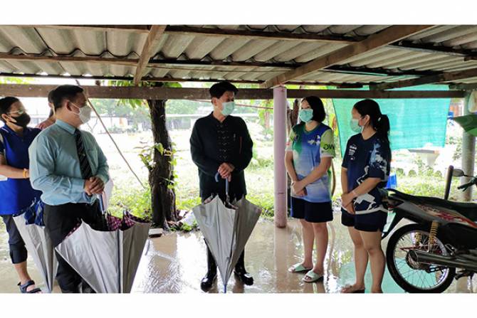 ดร.อวยชัย ศรีตระกูล ผอ.สพม.ตาก พร้อมด้วย นายวัลลภ เอี่ยมมะ รอง ผอ.สพม.ตาก ได้ลงพื้นที่ตรวจเยี่ยมและให้กำลังใจผู้บริหาร คณะครู และนักเรียนโรงเรียนผดุงปัญญา อ.เมือง จ.ตาก หลังจากประสบเหตุน้ำท่วม เนื่องจากเมื่อวันที่ 9 กันยายน 2564 เกิดฝนตกหนักต่อเนื่องหลายชั่วโมง และการระบายน้ำไม่ทัน ทำให้เกิดน้ำท่วมสูงในบริเวณหน้าโรงเรียน สนามฟุตบอล อาคารเรียน สำนักงาน หอพักนอนนักเรียน และบ้านพักครู ในการนี้ ดร.อวยชัย ศรีตระกูล ผอ.สพม.ตาก ได้ให้กำลังใจ ดูสภาพปัญหาที่เกิดขึ้น และหาแนวทางในการช่วยเหลือในลำดับต่อไป