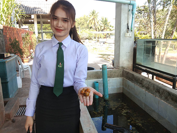 นักศึกษา ว.เกษตรอุดรธานี เพาะหอยสีทอง เลี้ยงแล้วรวย