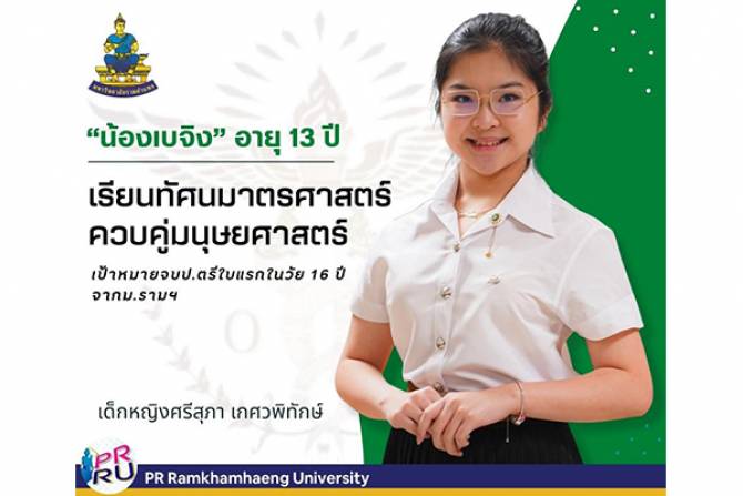 “น้องเบจิง” วัย 13 ปี เรียนควบคณะทัศนมาตรศาสตร์และมนุษยศาสตร์ ม.ร.
