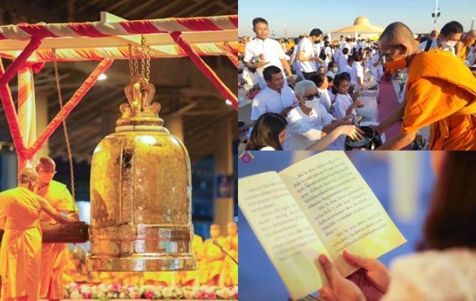 วัดพระธรรมกายจัดสวดมนต์ข้ามปี - ตักบาตรพระกว่า 3,000 รูป สั่งสมบุญส่งท้ายปีเก่าต้อนรับปีใหม่