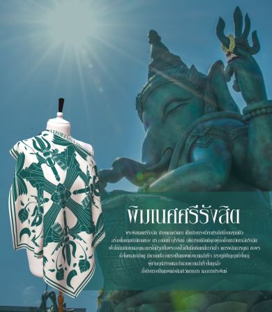 “สำหรับคอลเลคชั่นผ้าคลุมไหล่ มีแนวคิดโดยเริ่มต้นจากความเป็นเอกลักษณ์ของมหาวิทยาลัยรังสิต ได้แก่ การสืบทอดความเชื่อ ความศรัทธาทางศาสนากับสิ่งศักดิ์สิทธิ์ต่อการดำรงอยู่ของความหลากหลายทางวัฒนธรรมในสังคม เพื่อสร้างอัตลักษณ์ทางวัฒนธรรม โดยลวดลายผ้าสะท้อนเรื่องราวองค์ประติมากรรมสิ่งศักดิ์สิทธิ์ประจำมหาวิทยาลัยรังสิต ๕ ลวดลาย ได้แก่ องค์พระศรีศาสดา องค์พิฆเนศศรีรังสิต องค์สุริยเทพ องค์เจ้าแม่กวนอิม และองค์ท้าวเวสสุวรรณ โดยทั้ง ๕ ลวดลาย เป็นการนำสถาปัตยกรรมสิ่งศักดิ์สิทธิ์คู่มหาวิทยาลัยรังสิตมาใช้ในการออกแบบลวดลายลงบนพื้นผ้าไหมสเปน เพื่อประยุกต์นำมาเป็นผ้าคลุมไหล่ ผ้าพันคอหรืออุปกรณ์แฟชั่นอื่นๆ ได้ตามความชอบ” ดร.เริงศักดิ์ กล่าว