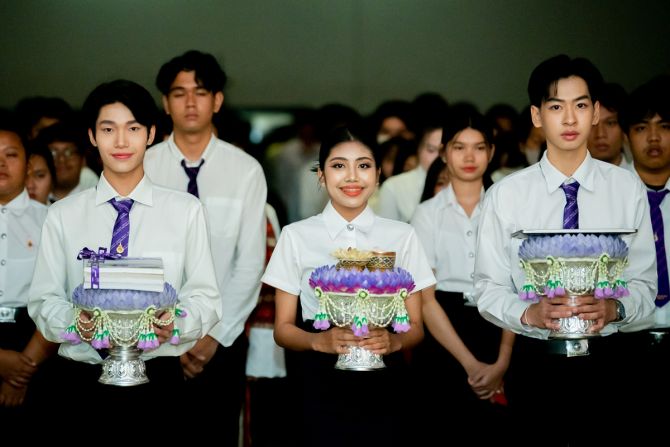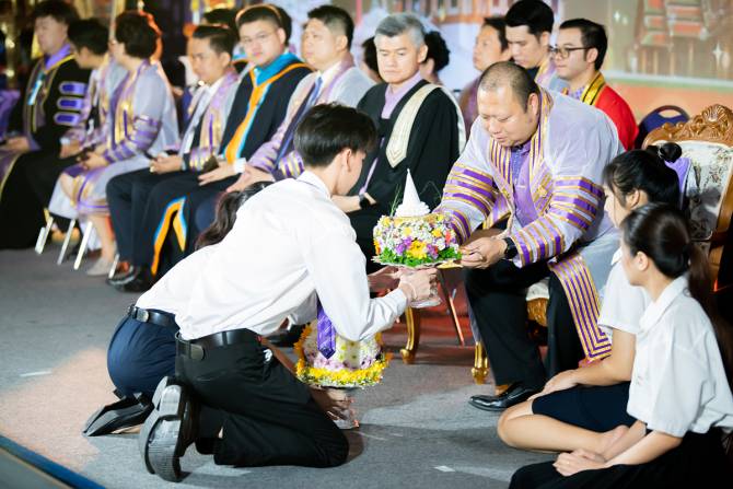 ต่อมาเป็นการมอบรางวัลประกวดพานไหว้ครู ประจำปีการศึกษา 2567 โดยประเภทสวยงาม รางวัลชนะเลิศ ได้แก่ คณะเทคโนโลยีคหกรรมศาสตร์ รางวัลรองชนะเลิศอันดับ 1 ได้แก่ คณะเทคโนโลยีสื่อสารมวลชน รางวัลรองชนะเลิศอันดับ 2 ได้แก่ ระดับประกาศนียบัตรวิชาชีพ ประเภทวิชาพาณิชยกรรม รางวัลชมเชย ได้แก่ คณะวิทยาศาสตร์และเทคโนโลยี และคณะครุศาสตร์อุตสาหกรรม และประเภทความคิดสร้างสรรค์ รางวัลชนะเลิศ ได้แก่ คณะบริหารธุรกิจ รางวัลรองชนะเลิศอันดับ 1 ได้แก่ ระดับประกาศนียบัตรวิชาชีพ ประเภทวิชาอุตสาหกรรมท่องเที่ยว รางวัลรองชนะเลิศอันดับ 2 ได้แก่ ระดับประกาศนียบัตรวิชาชีพ ประเภทวิชาคหกรรม รางวัลชมเชย ได้แก่ คณะศิลปศาสตร์ ระดับประกาศนียบัตรวิชาชีพ ประเภทวิชาพาณิชยกรรม คณะวิศวกรรมศาสตร์ และคณะสถาปัตยกรรมศาสตร์และการออกแบบ และปิดท้ายด้วยพิธีบายศรีสู่ขวัญนักศึกษาใหม่ การแสดงสมโภชแม่บายศรี มนต์ขลังพระนคร โดยวงกุหลาบโชว์ จังหวัดพระนครศรีอยุธยา และพิธีผูกข้อมือสู่ขวัญตัวแทนนักศึกษาตามลำดับ