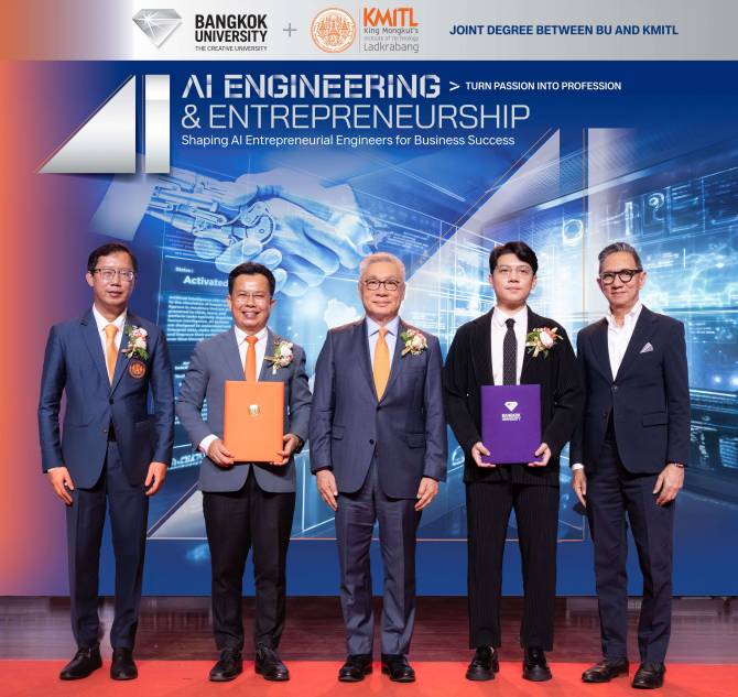 อีกหนึ่งก้าวสำคัญของวงการศึกษาไทย ที่ได้มีการร่วมพัฒนาหลักสูตรร่วมระหว่าง มหาวิทยาลัยกรุงเทพและสถาบันเทคโนโลยีพระจอมเกล้าเจ้าคุณทหารลาดกระบังในการร่วมพัฒนาหลักสูตร AI Engineering & Entrepreneurship ที่มุ่งเน้นพัฒนานักศึกษาสู่การเป็นนักวิศวกรรุ่นใหม่ ที่มีความถนัดทั้ง Technology และ Entrepreneur Spirit เพื่อเพิ่มความสามารถในการแข่งขันของประเทศไทยด้วยทักษะผู้ประกอบการสตาร์ทอัพและความเชี่ยวชาญเฉพาะทางในเทคโนโลยีชั้นสูง