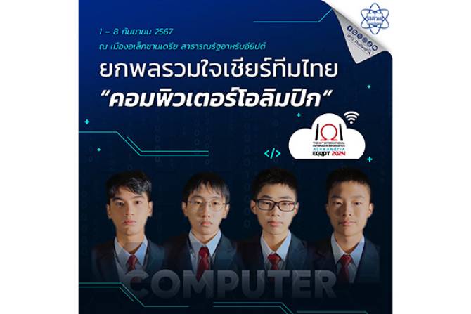 รูดม่านปิดฉากการแข่งขันกีฬาโอลิมปิก 2024 ไปเรียบร้อยแล้ว เป็นที่ชื่นอกชื่นใจกันถ้วนหน้ากับทัพนักกีฬาไทย มากความสามารถที่นับวันก็ยิ่งผนึกกำลังกันสร้างผลงานดีวัน ดีคืน หันมาเชียร์โอลิมปิกวิชาการกันบ้าง ปีนี้ยังมีให้ลุ้นกับการแข่งขันคอมพิวเตอร์โอลิมปิก 2567 ที่เยาวชนนานาชาติจะเริ่มประชันความสามารถกันต้นเดือนกันยายนนี้ โดยทีมผู้แทนประเทศไทยคอมพิวเตอร์โอลิมปิก ประกอบด้วย นายกันต์ธรี ยงวณิชย์ โรงเรียนประชาคมนานาชาติ กรุงเทพฯ นายธาวิน เต็งอำนวย โรงเรียนสามเสนวิทยาลัย กรุงเทพฯ นายปภังกร อภิญญานนท์ โรงเรียนสวนกุหลาบวิทยาลัย กรุงเทพฯ นายชร วาณิชยชลกิจ โรงเรียนระยองวิทยาคม จังหวัดระยอง แข่งขันวันที่ 1 – 8 กันยายน 2567 ณ เมืองอเล็กซานเดรีย สาธารณรัฐอาหรับอียิปต์ นับเป็นเวทีที่นักเรียนไทยจะได้แสดงศักยภาพทางวิชาการ และแลกเปลี่ยนประสบการณ์กับเพื่อน ๆ จากประเทศต่าง ๆ สร้างชื่อเสียงให้กับบ้านเราในระดับนานาชาติอีกด้วย