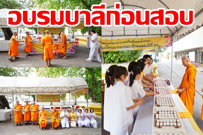 การนี้ พระครูปลัดรัตนวีรวัฒน์ เจ้าอาวาสวัดพระธรรมกาย พร้อมด้วยคณะศิษยานุศิษย์วัดพระธรรมกายน้อมถวายเครื่องดื่มและน้ำปานะร่วมสนับสนุนโครงการอบรมบาลีก่อนสอบสนามหลวงประโยค ป.ธ.6-9 ตลอดระยะเวลาการอบรม