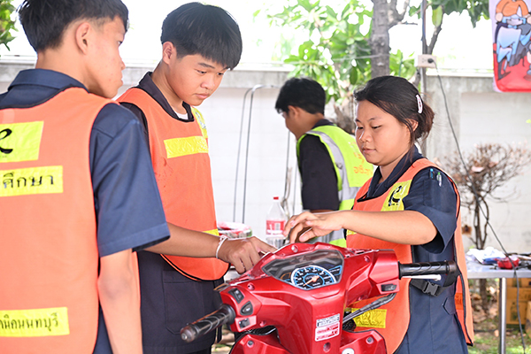 น้องน้ำตาลเปิดเผยว่า การได้เรียนรู้นอกห้องเรียนคือประสบการณ์ที่มีค่ามากที่สุด โดยเฉพาะเมื่อได้ลงมือทำจริง ได้บริการประชาชน และเรียนรู้เทคนิคใหม่ ๆ จากอาจารย์ที่อธิบายหน้างานโดยตรง เช่น การชาร์ตแบตเตอรี่ การตรวจเช็คต่าง ๆ รวมถึงการใช้เครื่องมือสมัยใหม่อย่าง Dr.Doctor API ซึ่งเป็นเครื่องมือช่วยตรวจสอบความผิดปกติของระบบเซ็นเซอร์ในรถจักรยานยนต์ระบบหัวฉีด พร้อมรีเซตค่าให้กลับสู่มาตรฐานจากโรงงาน