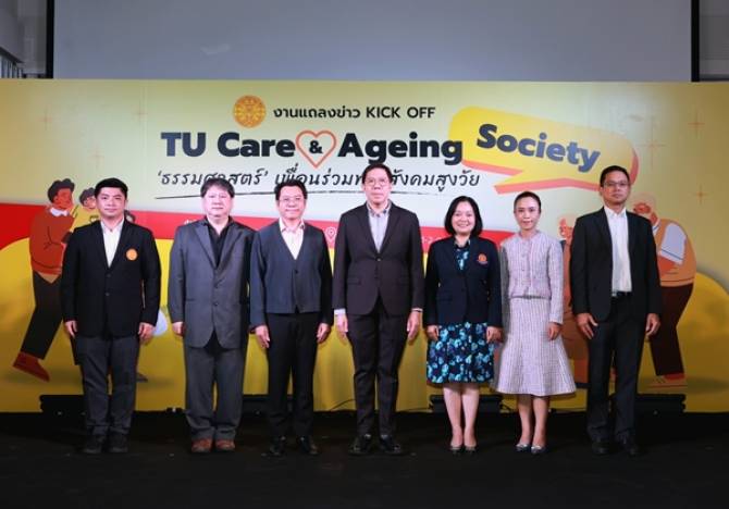 มหาวิทยาลัยธรรมศาสตร์ (มธ.) จัดงานแถลงข่าว KICK OFF โครงการ TU Care & Ageing Society ‘ธรรมศาสตร์’ เพื่อนร่วมทางสังคมสูงวัย เมื่อวันที่ 30 เม.ย. 2568 ประกาศความพร้อมที่จะเป็นส่วนหนึ่งในการดูแลประชาชนและรับใช้สังคมท่ามกลางสถานการณ์ความท้าทายสังคมสูงวัย ด้วยการบูรณาการทรัพยากรจากหลากหลายคณะและหน่วยงานเป็นหนึ่งเดียวตามค่านิยม ONE TU เพื่อเป็นกลไกสนับสนุนทางด้านบริการวิชาการ บริการสังคม ตลอดจนการสื่อสารสังคม ณ มิวเซียมสยาม กรุงเทพมหานคร (กทม.) โดยมีสื่อมวลชนและผู้ที่สนใจเข้าร่วมเป็นจำนวนมาก
