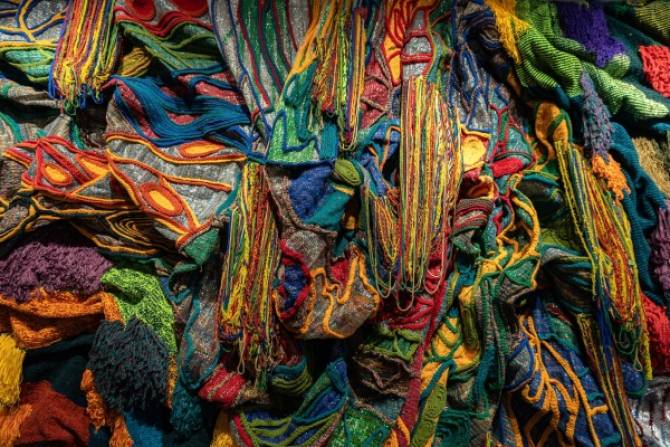 เรื่องราวใหม่จากเศษผ้าเก่า - มุก เพลินจันทร์ วิญญรัตน์ สร้างสรรค์ Mitta del Santi ขึ้นมาเพื่อสะท้อนความเปราะบางและความตึงเครียดของสถานการณ์ปัจจุบัน ท่ามกลางความขัดแย้งในภูมิภาคที่ยังคงดำเนินไปอย่างต่อเนื่อง งานศิลปะที่เป็นเหมือนสัญญาณชี้ให้เห็นถึงความเป็นไปได้ในการเยียวยาและเปลี่ยนแปลง ไม่ใช่แค่เพียงวัสดุเท่านั้น แต่ยังรวมไปถึงความเข้าใจ ความทรงจำ และประวัติศาสตร์ที่เคยมีร่วมกันอีกด้วย