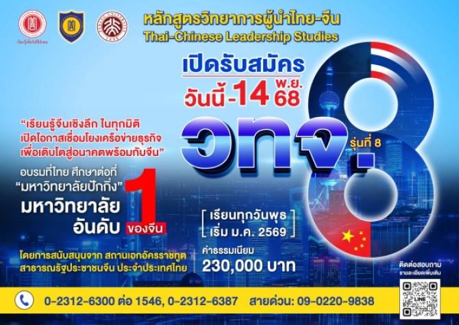สถาบันวิทยาการผู้นำไทย-จีน เปิดรับสมัครหลักสูตร วทจ.