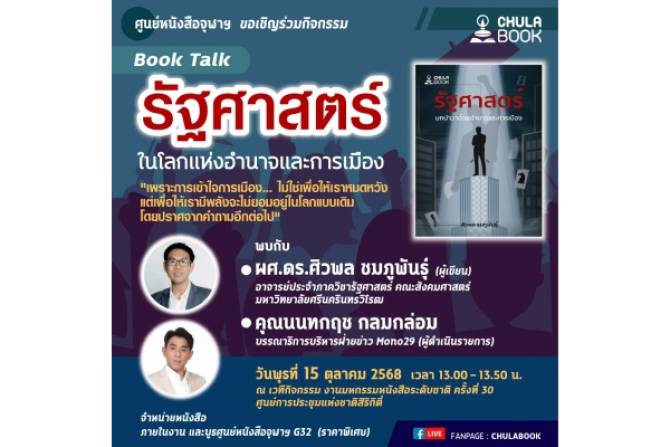 - ศูนย์หนังสือจุฬาฯ จัดเสวนา "รัฐศาสตร์ ในโลกแห่งอำนาจและการเมือง" 12 ต.ค. 2568